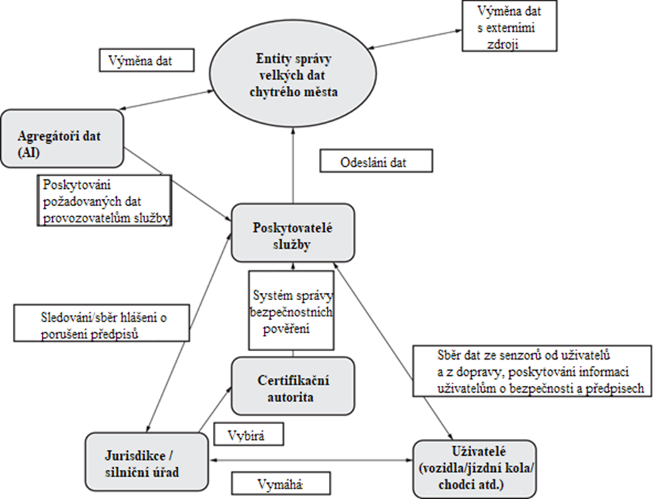 Obrázek 1 (obr. 2 dokumentu) – Koncepční architektura modelu rolí pro aplikační službu ITS v konceptu chytrého města
