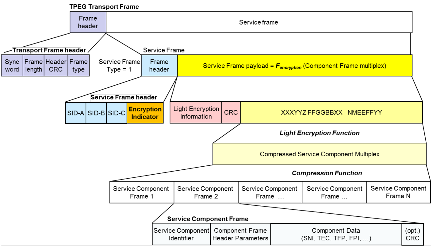 Popisovaný dokument definuje šifrovací mechanismy LTE pro datové rámce služby TPEG. Navrhuje šifrování symetrickým sdíleným klíčem, který je podle pravidel daných touto normou pozměňován, aby nebylo příliš snadné zprávu rozšifrovat. Specifikace byla navržena pro použití v business modelu B2B.