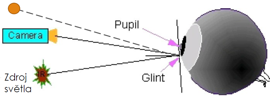 Obrázek 1: Princip zachycení směru pohledu oka za pomoci odrazu paprsku